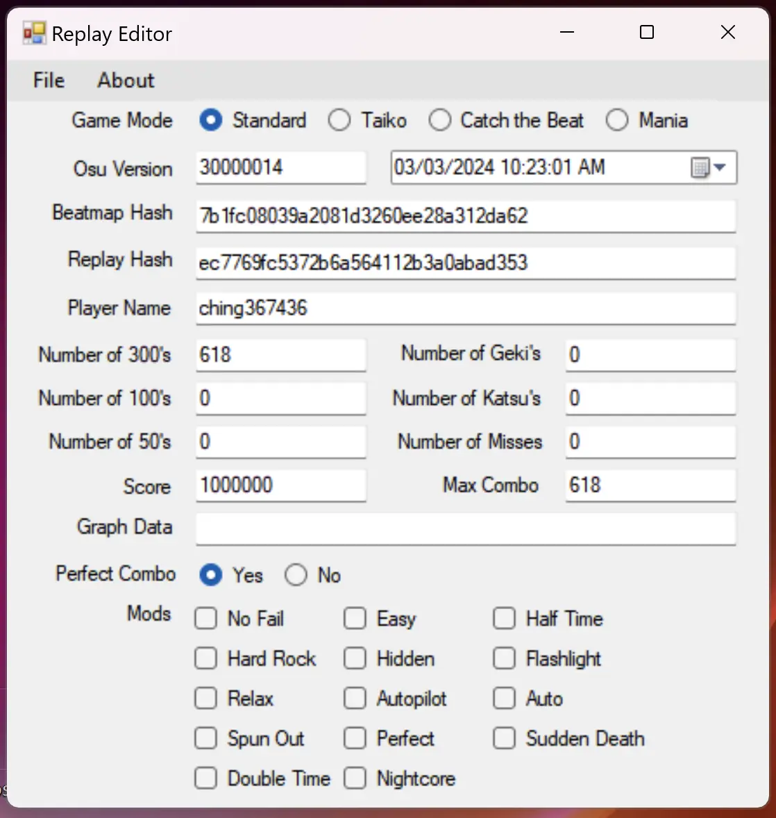 if (md5 !== score.info.beatmapHashMD5) { thrownewError( "The beatmap and replay do not match! Did you submit the wrong beatmap?", ); } if (score.info._rulesetId !== 0) { thrownewError("Sorry, only standard is supported :("); }