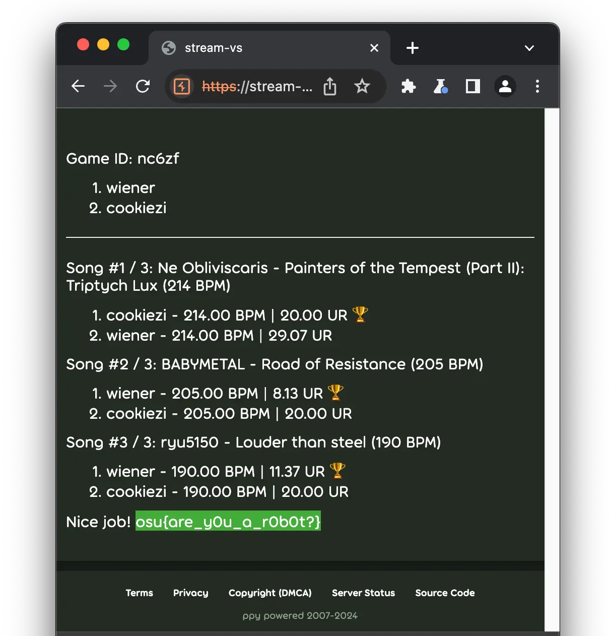 how good are you at streaming? i made a site to find out! you can even play with friends, and challenge the goat himself https://stream-vs.web.osugaming.lol/